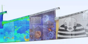 • Captures millions of laser measurements and photography to create colourised photo-realistic 3D point clouds representing an object, site or environ at a point in time giving a high level of detail; ideal for as-constructed, maintenance, asset management, dilapidation, monitoring and design.
